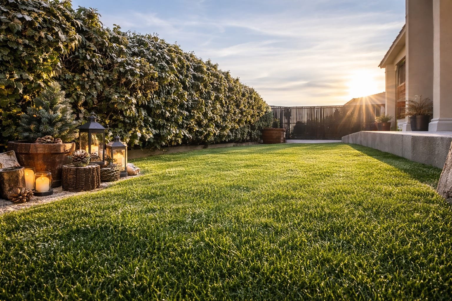 À une période où l’on souhaite limiter les tâches extérieures, le gazon synthétique séduit par sa facilité d’entretien. Contrairement au gazon naturel, il ne nécessite ni arrosage, ni tonte, ni engrais. En hiver, l’entretien se limite à retirer les feuilles mortes, brosser légèrement les fibres si besoin et rincer occasionnellement en cas de salissures. Un véritable gain de temps, surtout lorsque les températures ne sont pas propices au jardinage.